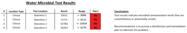 - Regular water analysis reports can aide in risk management! Test dental water units quarterly to make sure bacterial levels remain less than 500 CFU/ml of water.