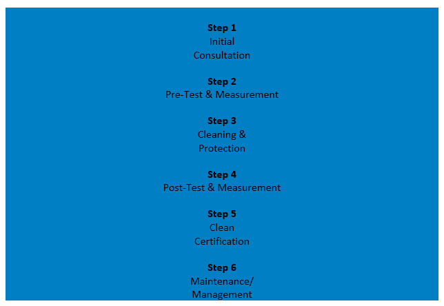 MCS uses the PermaSafe system, a 2-step disinfection and protection process using two key products: PermaSafe CLEAN (Step 1) and PermaSafe SHIELD (Step 2) applied with an electrostatic sprayer.